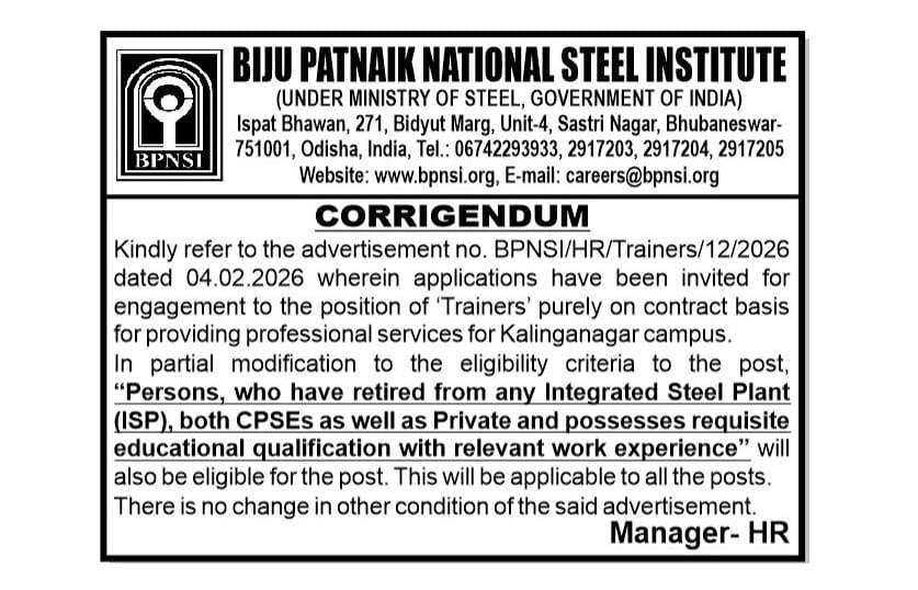 Biju Patnaik National Steel Institute (BPNSI), constituted by Ministry of Steel, Government of India was registered as a society in 2001 for the development of Steel Sector with an emphasis on the Secondary Steel Sector. The Institute creates trained man power with the requisite skill set and also re-skills and upskills the existing manpower in the steel sector.. Beside academics, the Institute fosters higher & more efficient production of steel by providing technical consultancy to the steel plants for implementing Energy Efficient Manufacturing Processes.